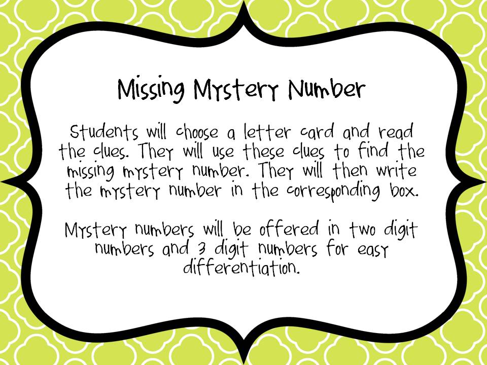 Find The Mystery Number. Model finding the mystery number using the clues you provide and a think aloud format. In order to find out what those numbers are for each shape, some hints are given.