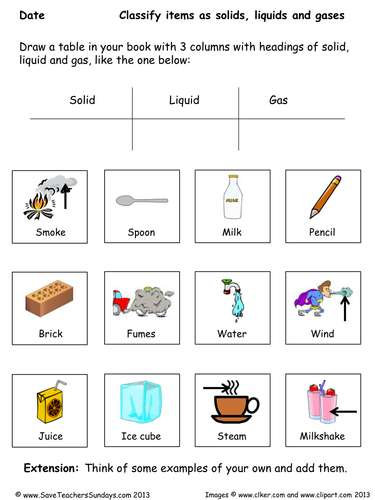 Solid , Liquid and Gas - The States of Matter - Worksheets ...