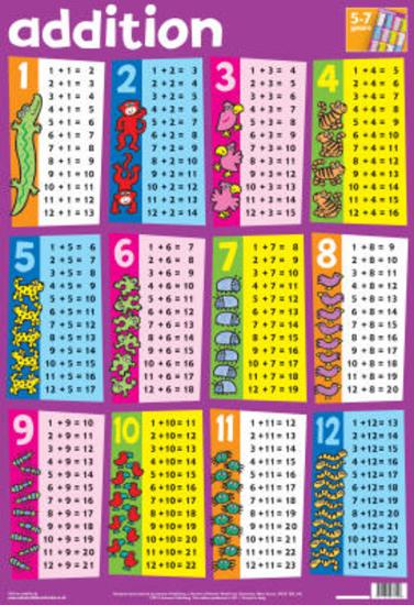 Laminated Addition Math Tables Educational Chart Poster ...