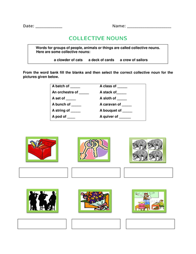 A collective noun worksheet can significantly aid in the process of learning about collective nouns, because it provides activities in which the learner can participate. Some of the worksheets displayed are Collective nouns are words used to describe a group of Worksheet will open in a new window. Collective nouns are names for a collection or a number of people or things.